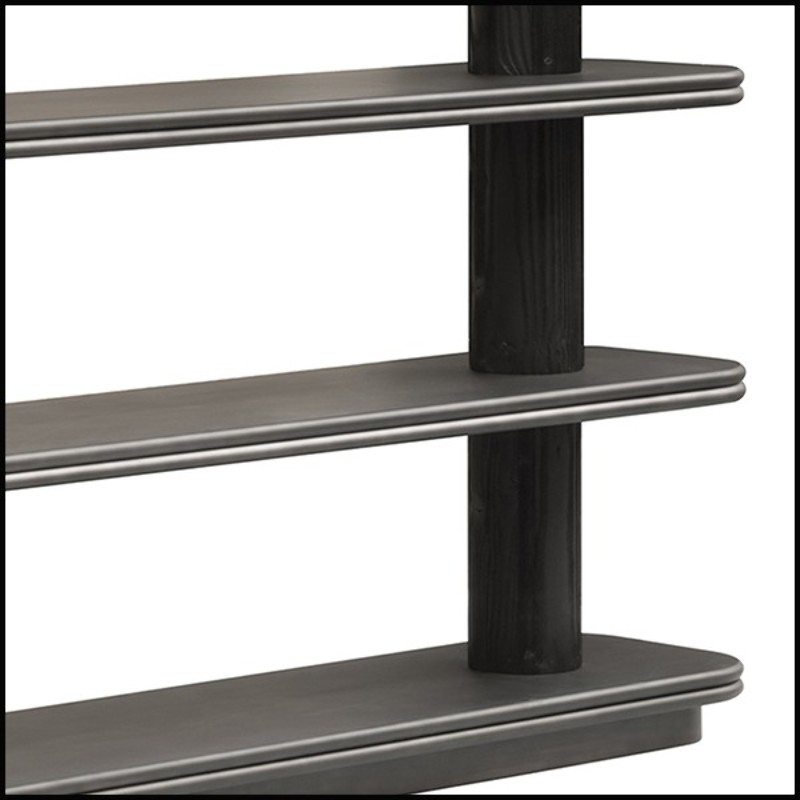 Bookcase with 2 poles structures made of solid wood in a dark lacquered finish.