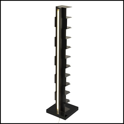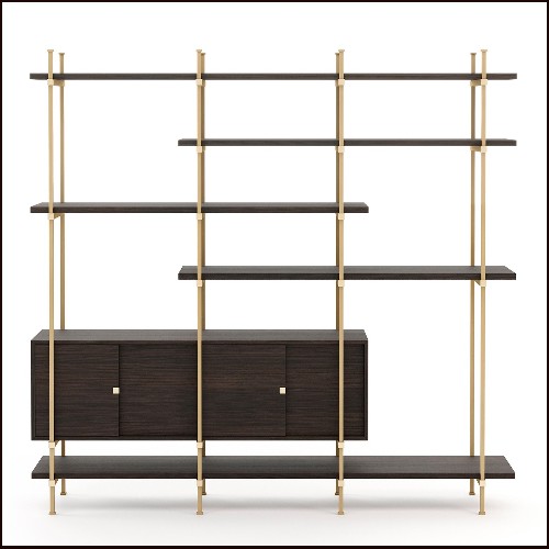 Bookcase Afloat with all structure in varnished solid mahognay wood, with brass details.