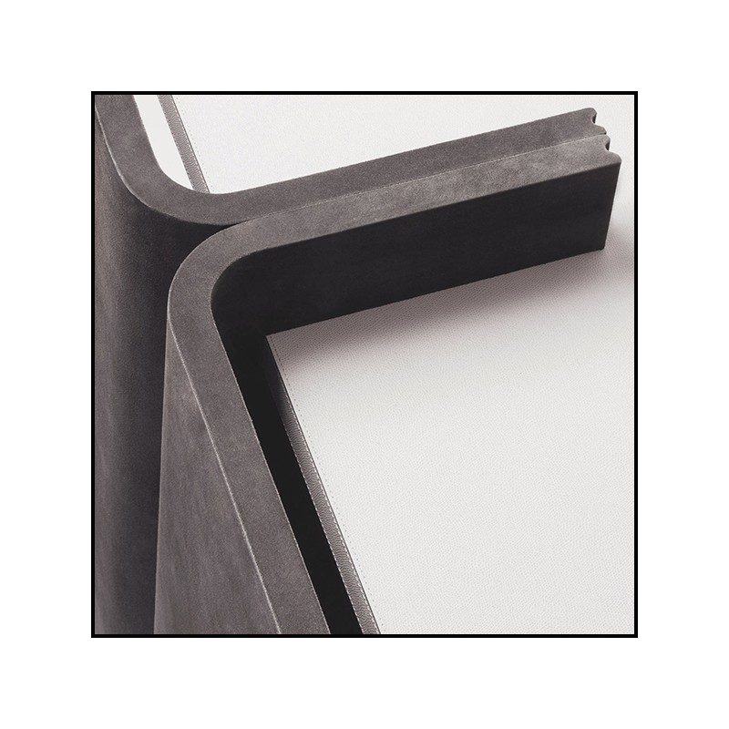 with a full structure covered with grey suede leather,