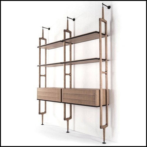 Bookcase Perla with all elements in solid ash wood in natural finish.