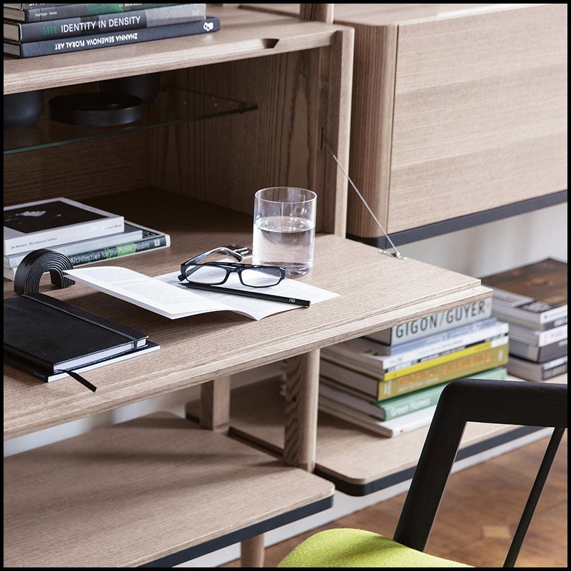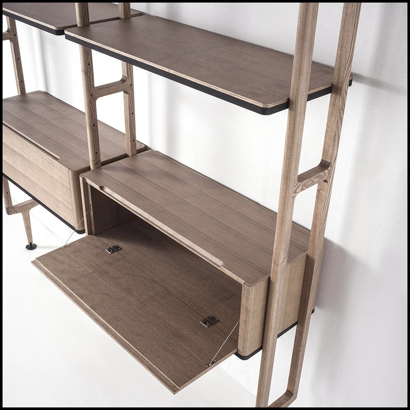 Bookcase Perla with all elements in solid ash wood in natural finish.