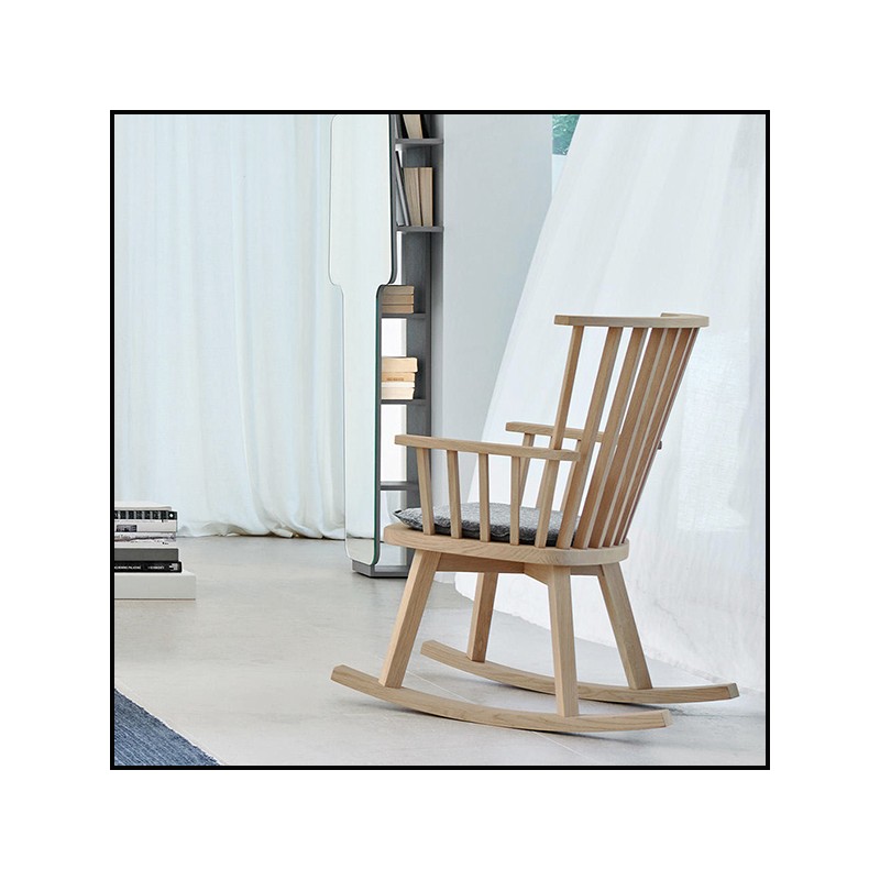 Chair Oaky Rocking features a full structure in solid oak wood, natural finish.