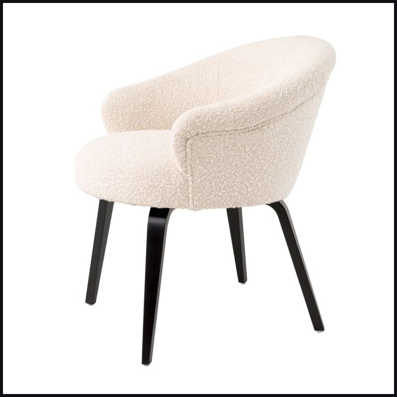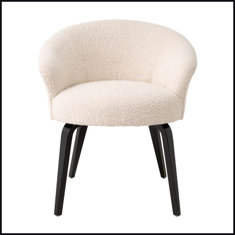 This design chair and modern chair, with its soft upholstery in cream bouclé fabric,