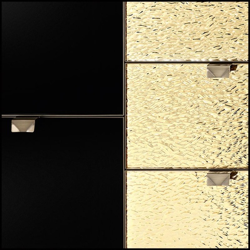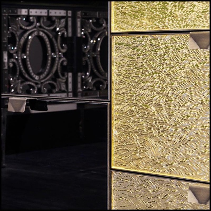 3 drawers in golden glass. Sides in metal in burnished and