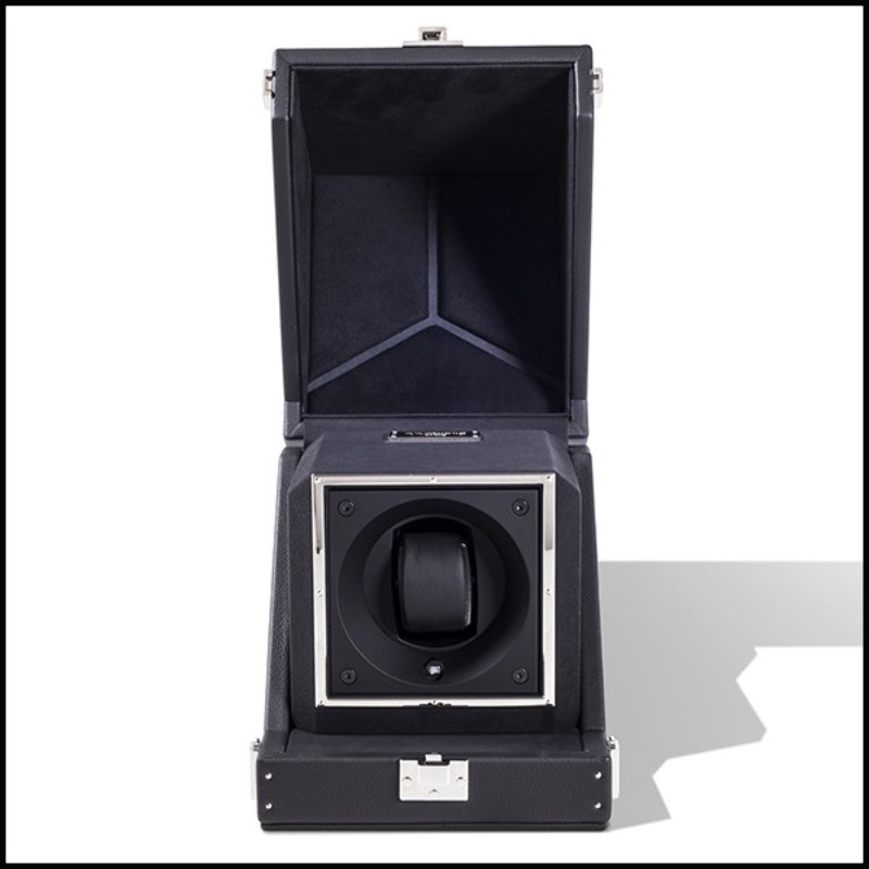 Watch winder box Single Luxwatch Black, covered with black grained cowhide leather.
