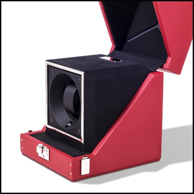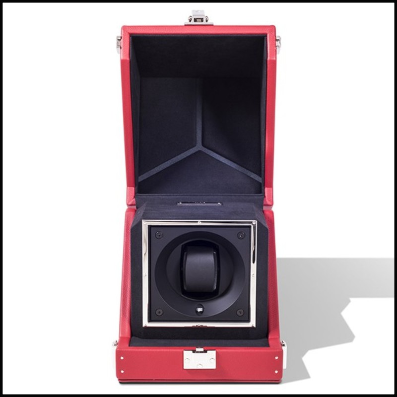 Watch winder box with solid brass in nickel plated padding and lining in black dinamica 186-Single Luxwatch Red