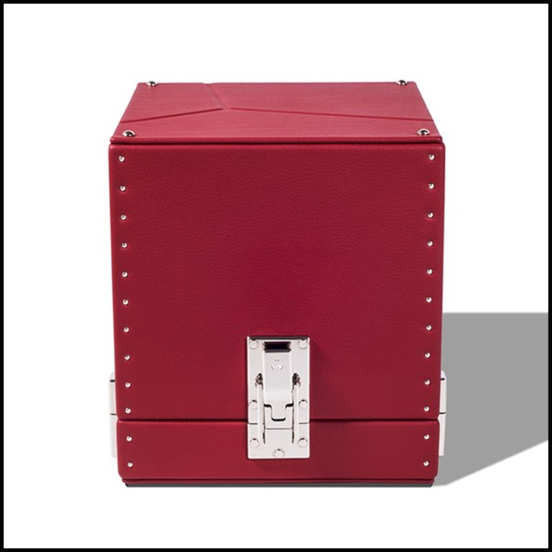 Watch winder box covered Single Luxwatch Red, with red grained cowhide leather.