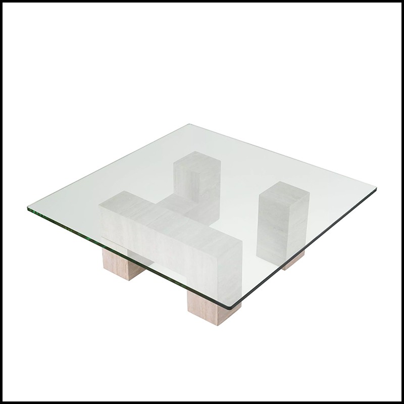 Coffee Table Ikal features a sturdy base in travertine.