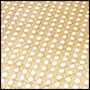 white lacquer, clear glass, and natural cane accents.