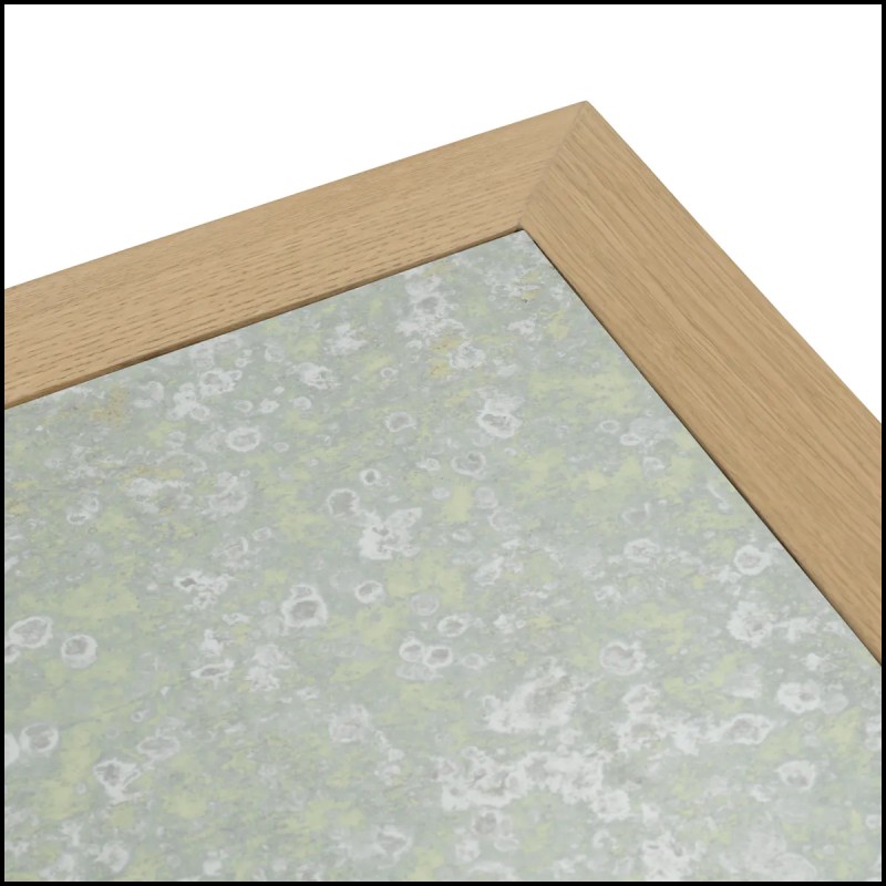 open-grain veneer and an antiqued mirror top.