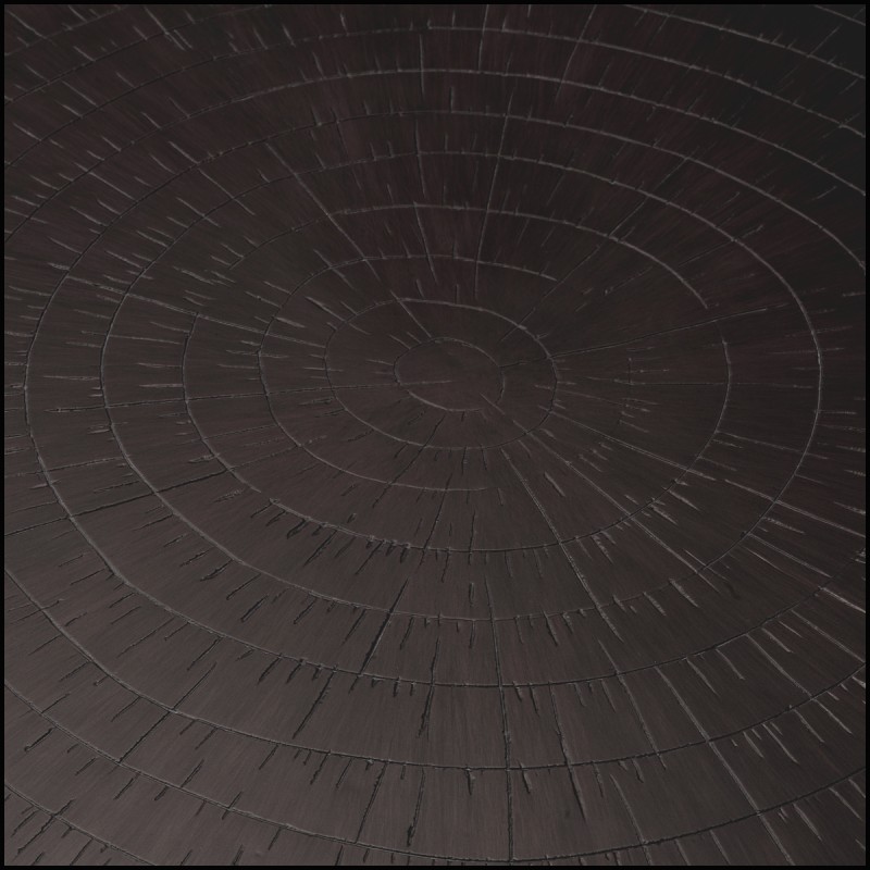 while the surface, reminiscent of tree rings and natural grain, introduces