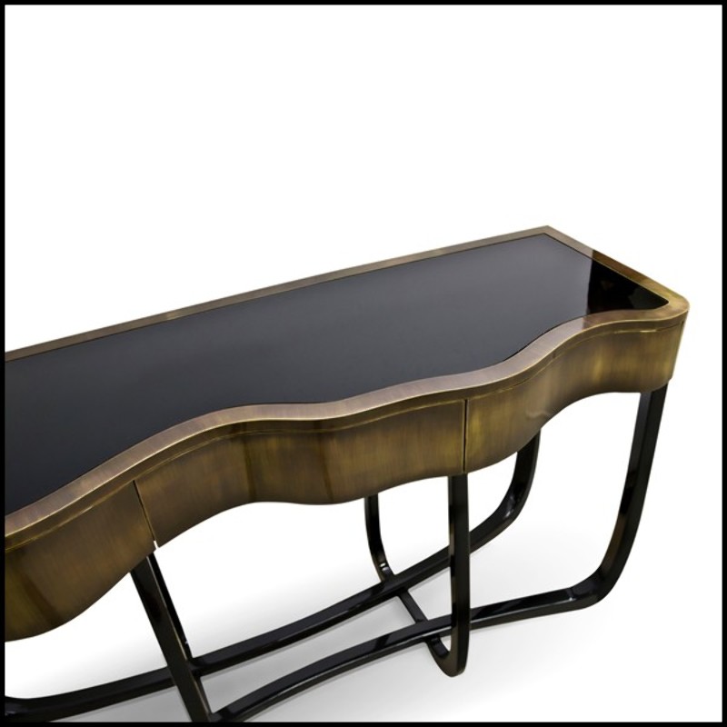 Console Table Curvy with structure in patinated brass with mahogany legs.