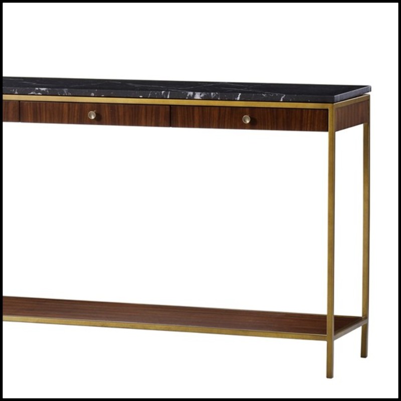 Its elegant steel structure, enhanced by a brass finish, contrasts