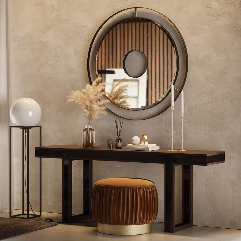 in matte smocked finish and contour line in high glossy black lacquered finish.