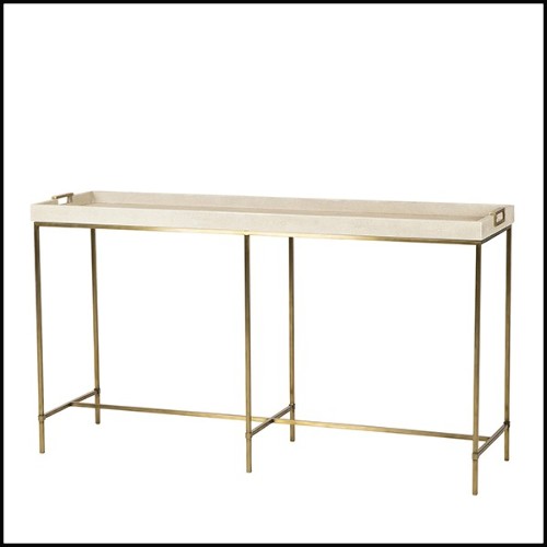 Console Table Shagry Cream with base in stainless steel in brass finish.