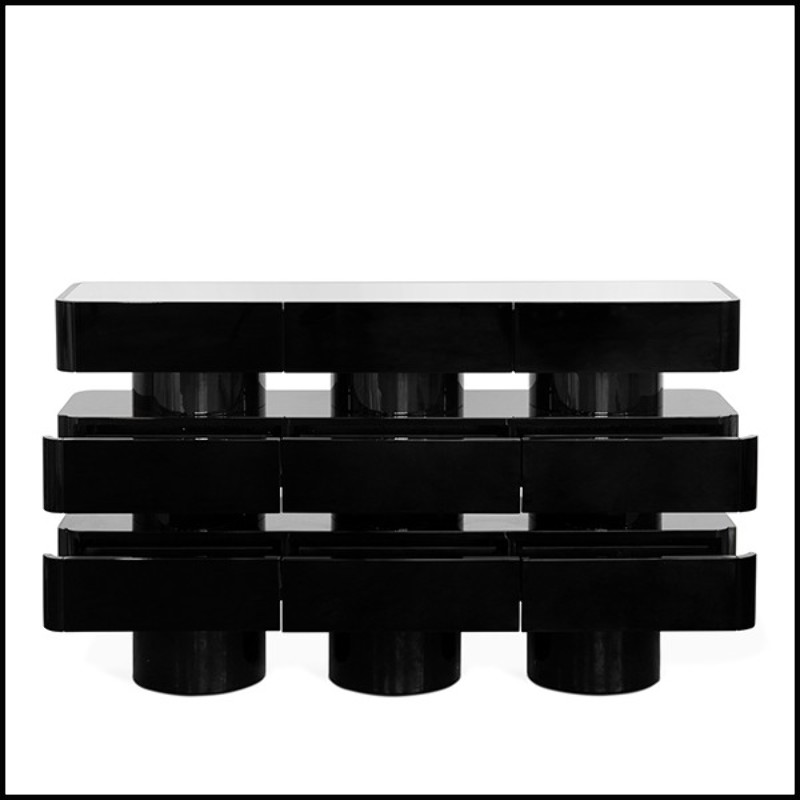 Crafted from solid beech and enhanced with white beech veneer and a black lacquered finish, it showcases a sophisticated contrast that elevates any interior. Equipped with discreet drawers, it offers practical storage while maintaining a sleek and elegant appearance.