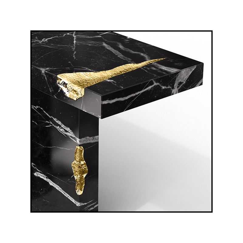 Console Table Majestic Black in black marquina marble and polished and hammered solid brass.