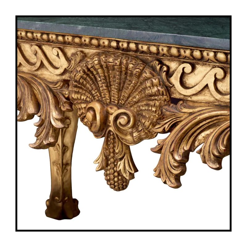 With its antique gold finish and stunning green marble,
