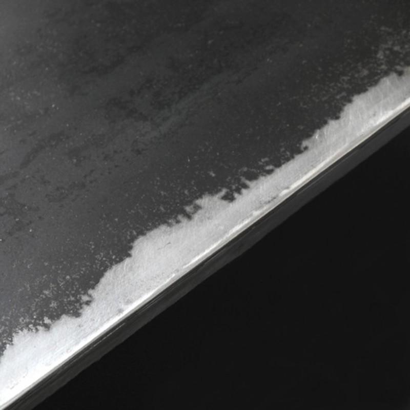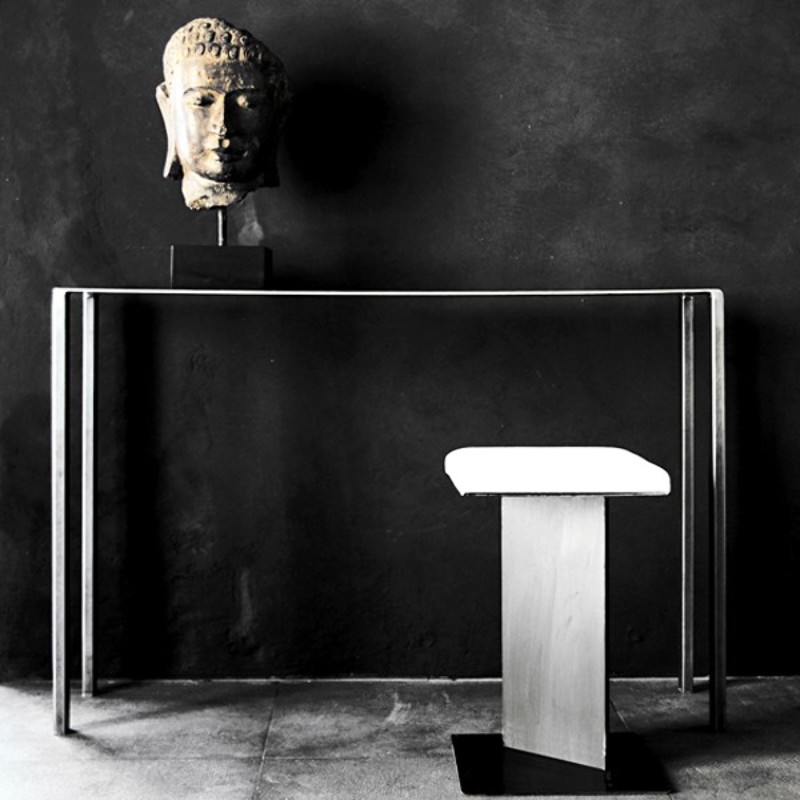 Console Acier in steel, dark finish, french manufacture, colorless varnished.