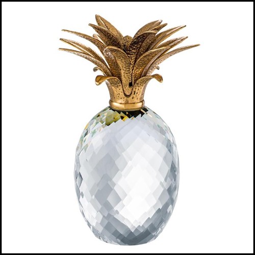 Decorative Object Pineapple made of crystal glass, brass leaves.