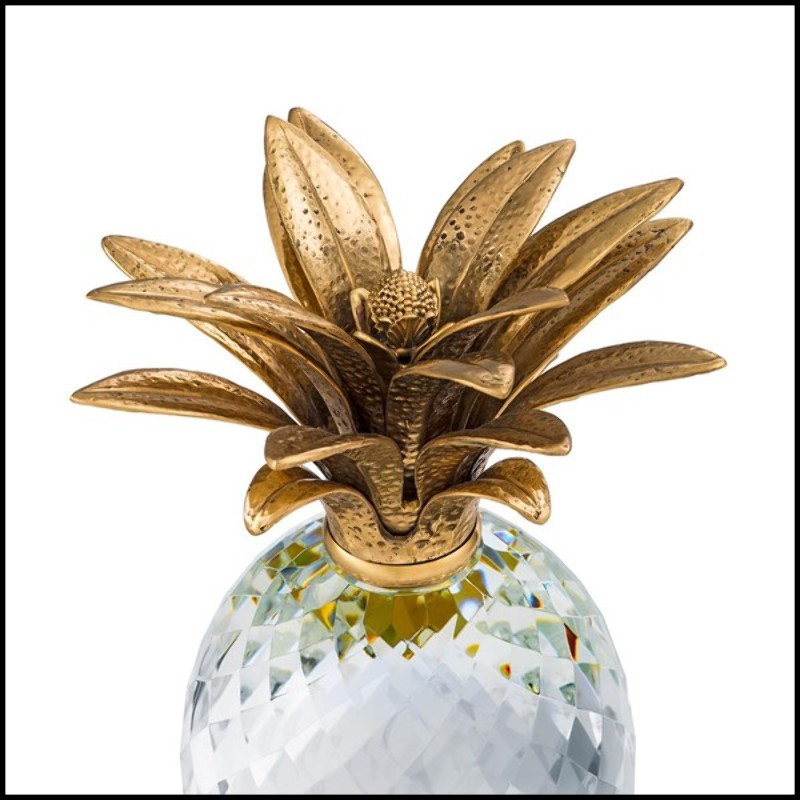 Decorative Object Pineapple made of crystal glass, brass leaves.