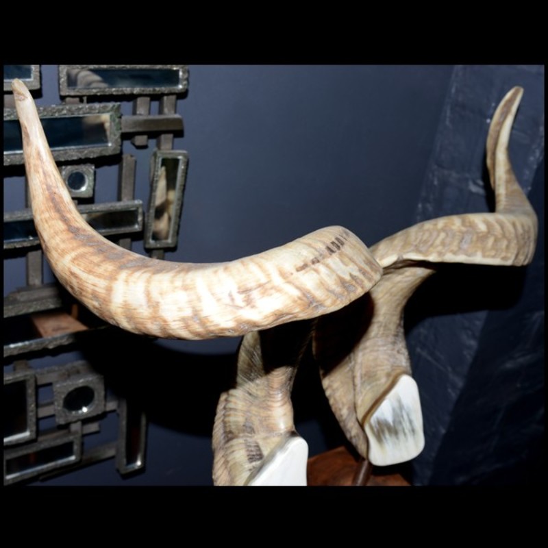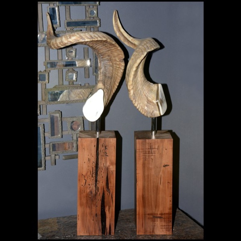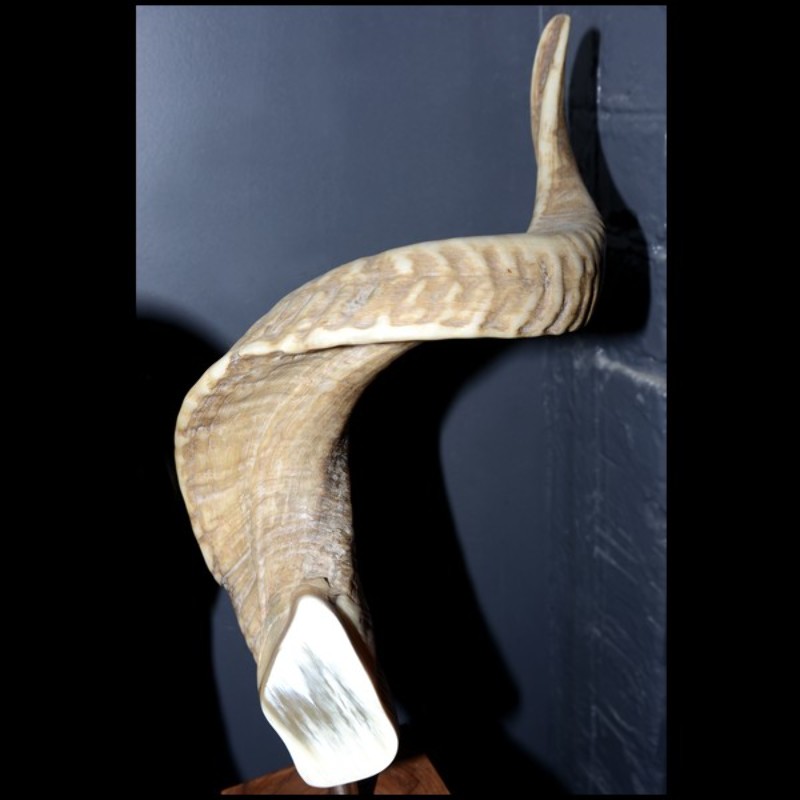 Set of two real Aries horns on noble wood base PC-Aries Horns