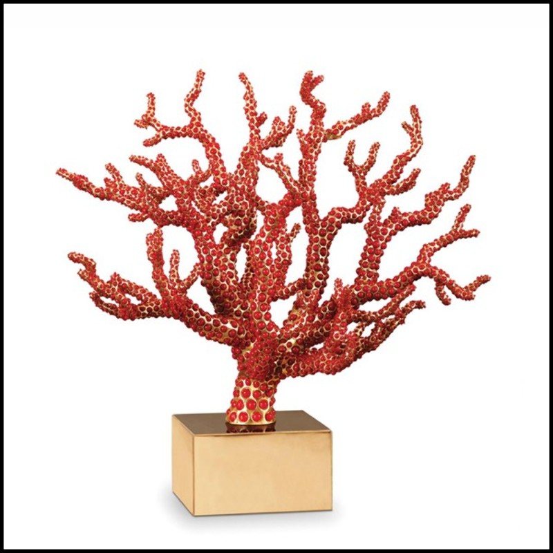 Sculpture handcrafted with red coral cabochons l'Objet-Coral Centerpiece