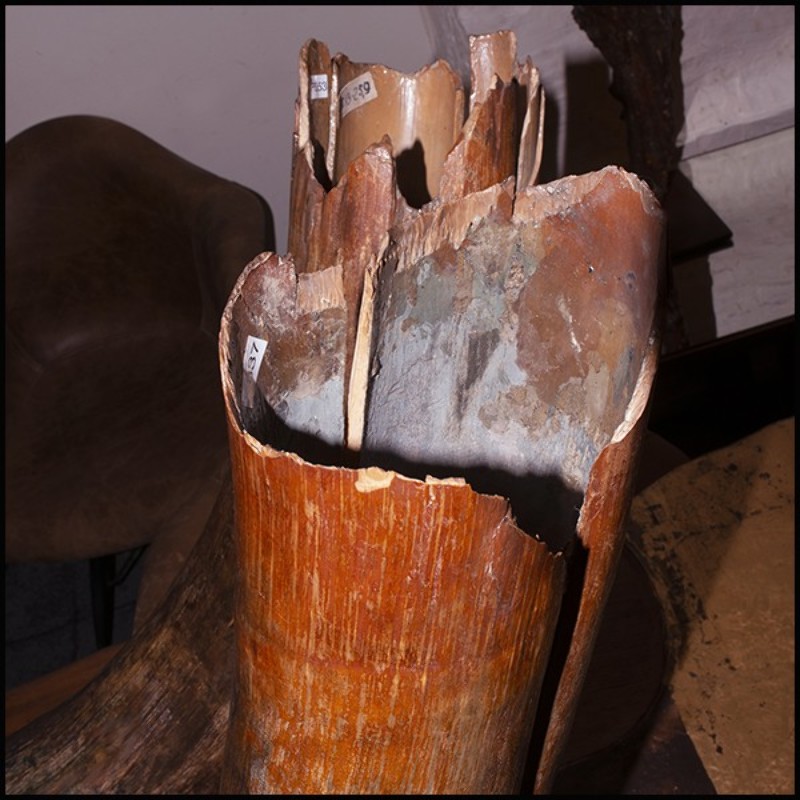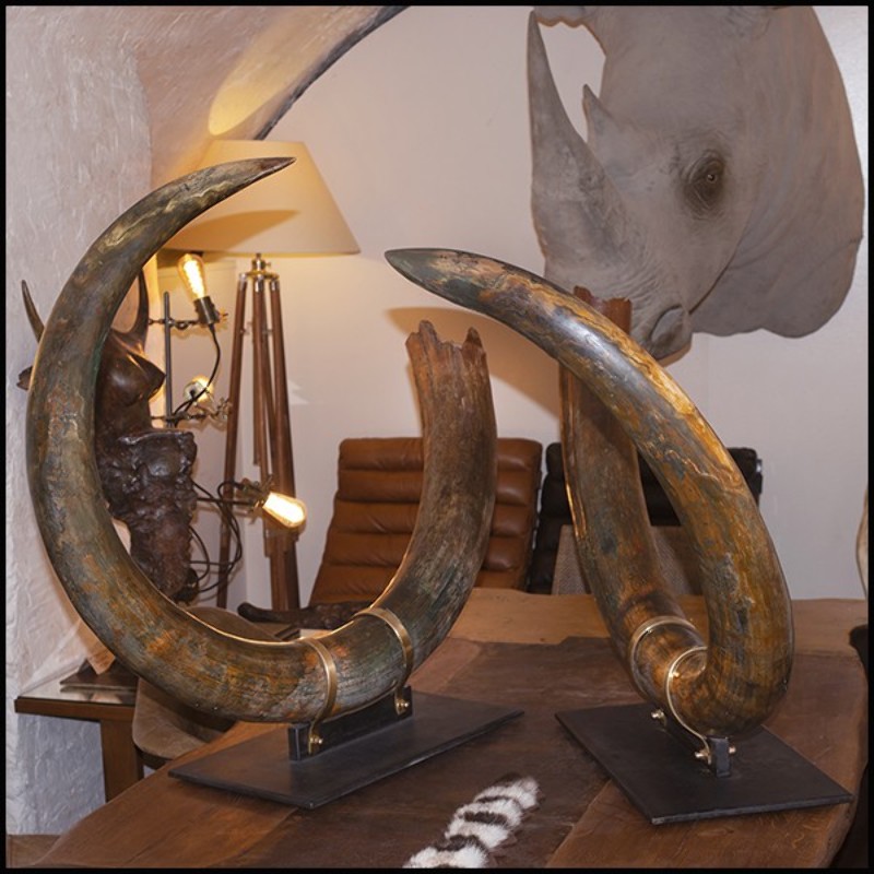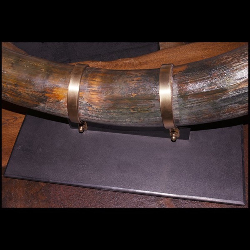 with brass rings to hold the tusks. Exceptional and unique piece.
