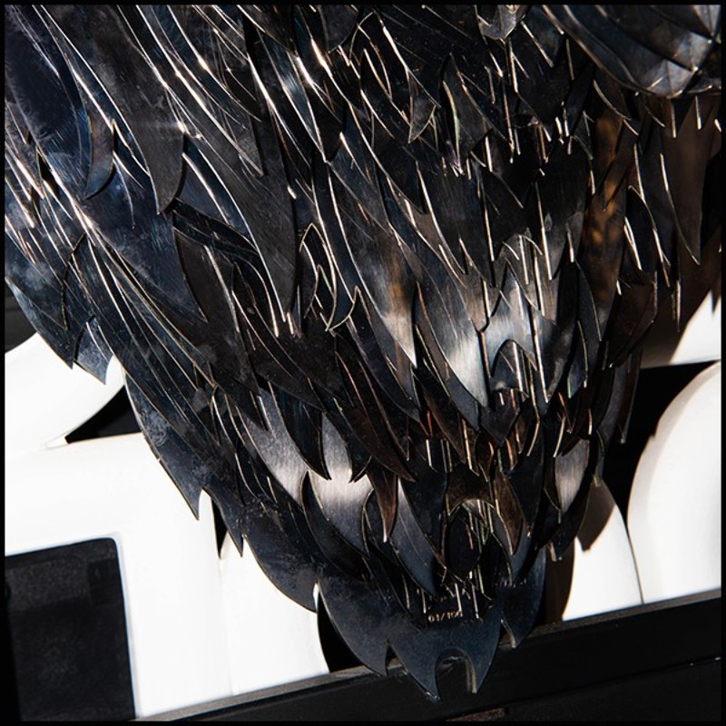 Sculpture Black Lion Trophee features a structure in solid brass,