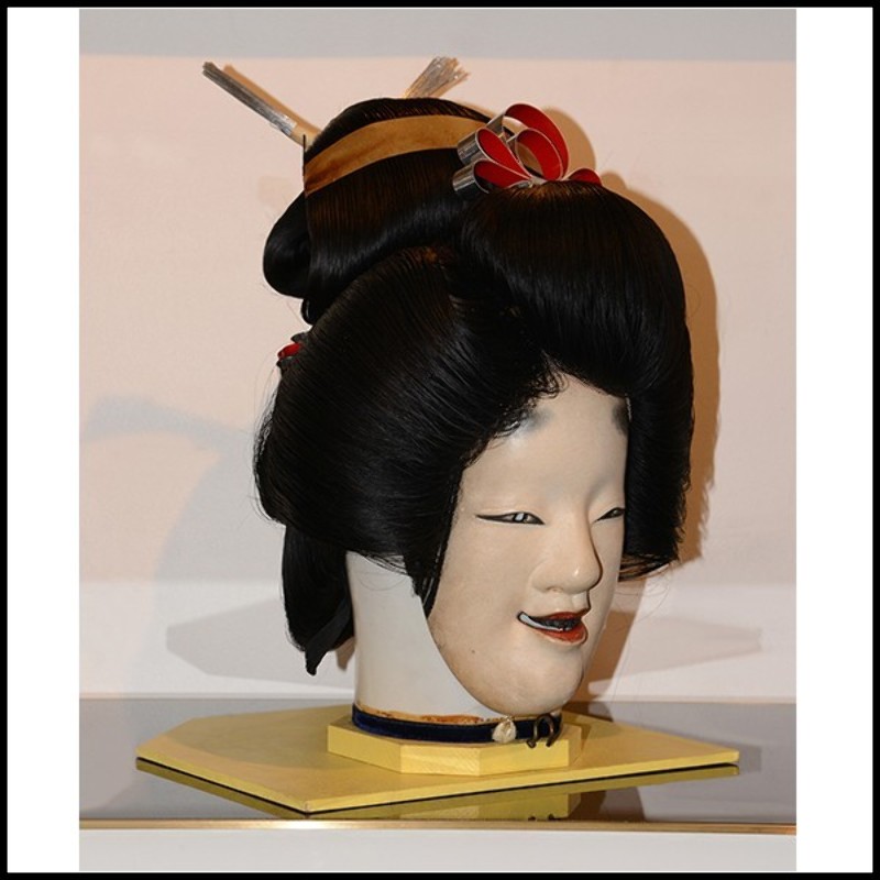 Mask Geisha Wig & Nô Theater 1, with real natural hair on head model,