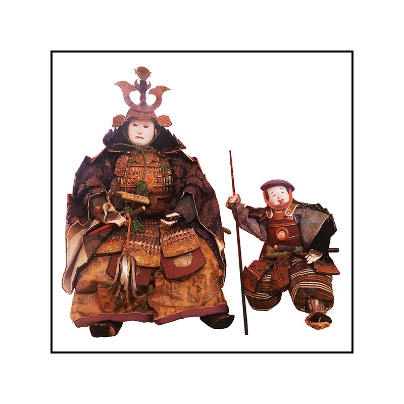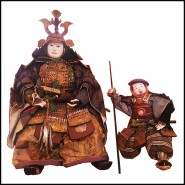 Sculpture Samuraï Puppet Musha Nyngyo A Set of 2 features a structure in wood, hand-carved wood,