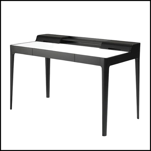 Desk Linea Leather all handcrafted in solid walnut wood dark matt wenge finish,