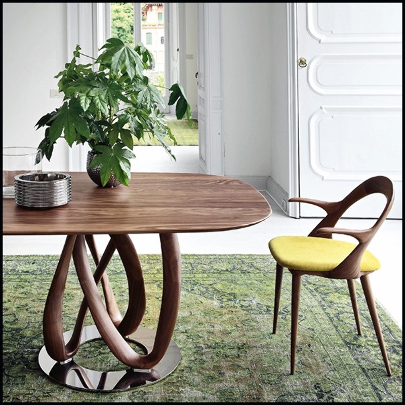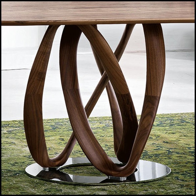 2 hand-carved solid walnut feet with steel bases in chrome finish.