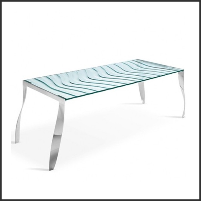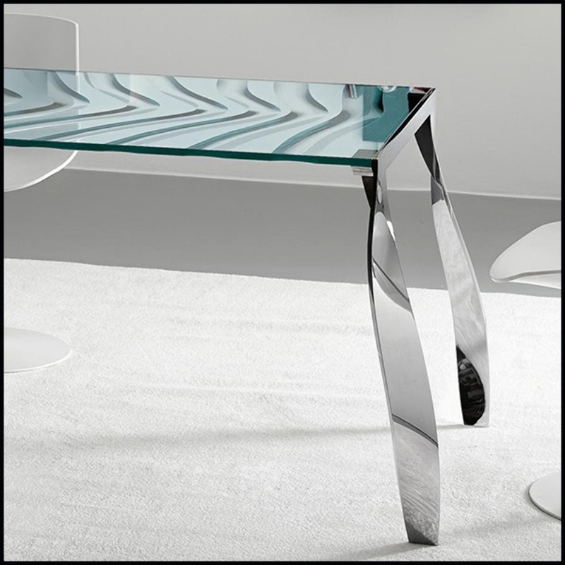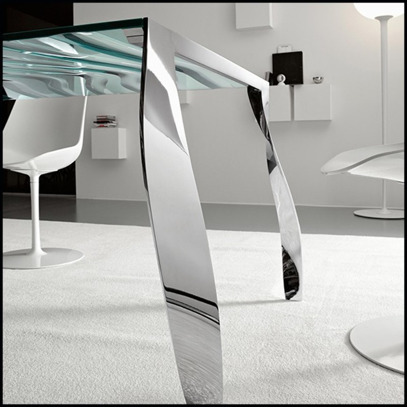 with waved lower surface. With 4 steel feet in polished chrome finish.