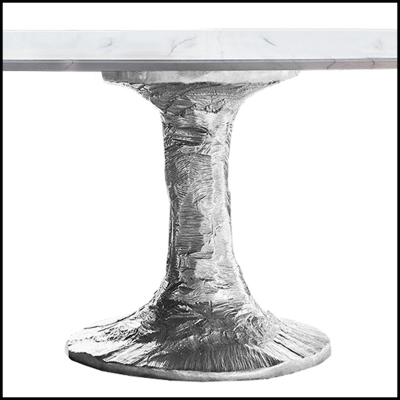 Dining Table Perenza features a white carrara marble top, reinforced with metal frame below.