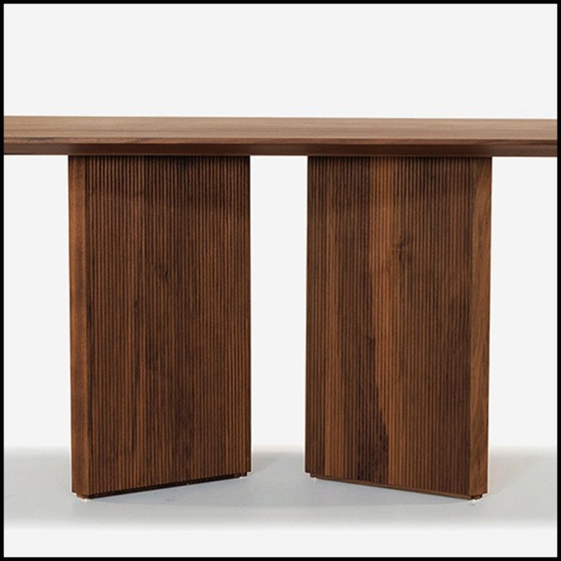 The Bergame Lines Table combines a solid walnut top with a sculpted prismatic