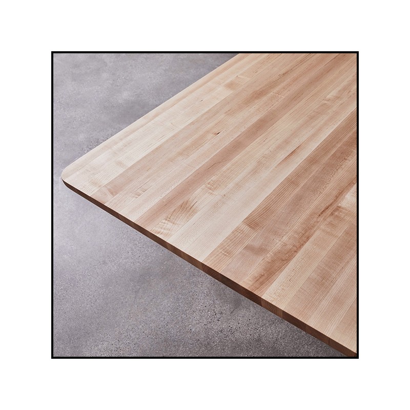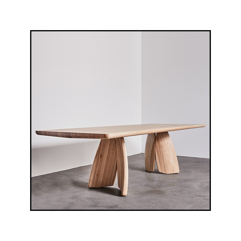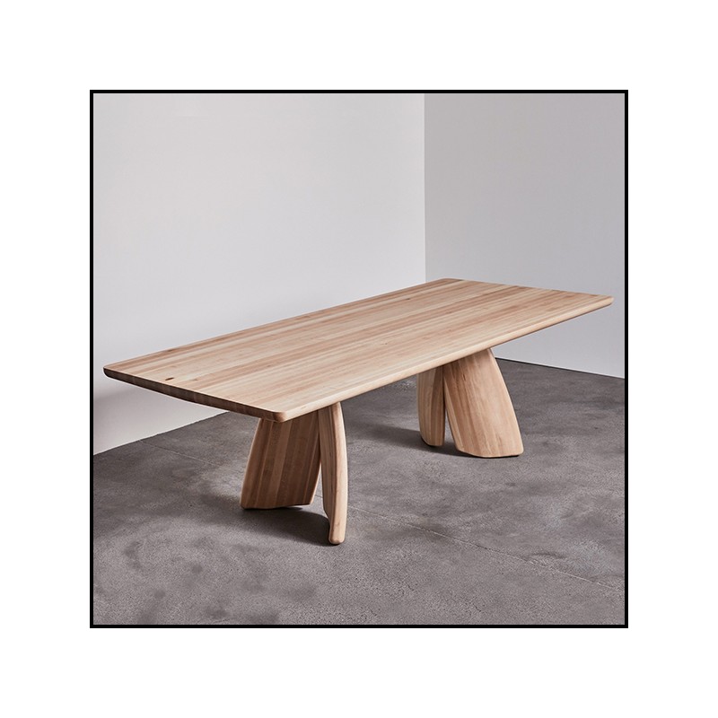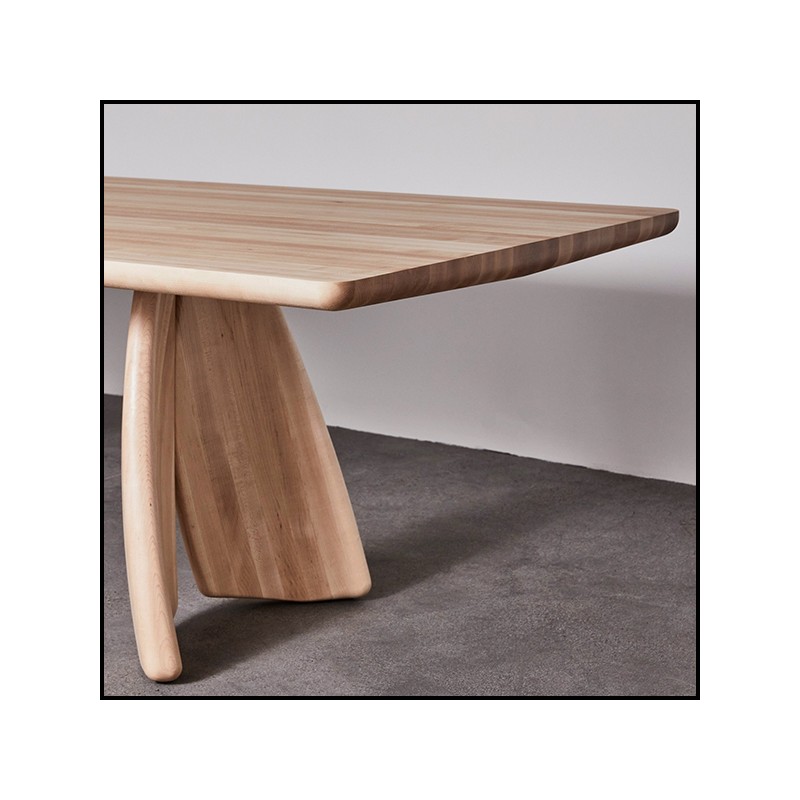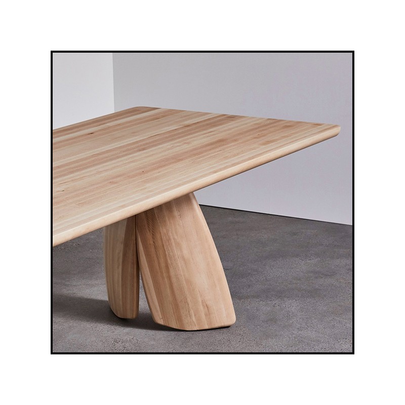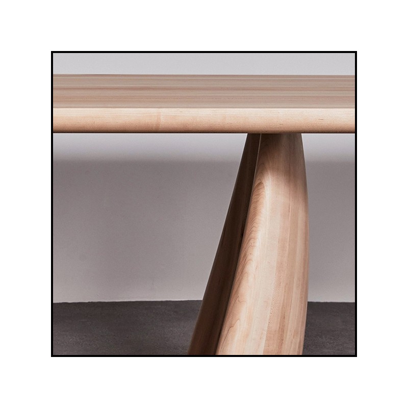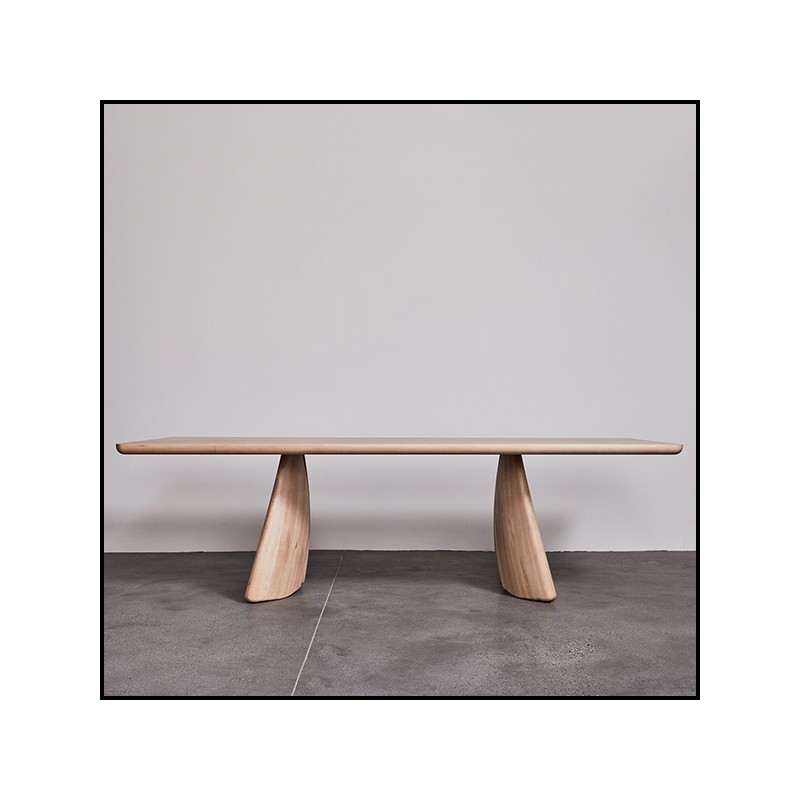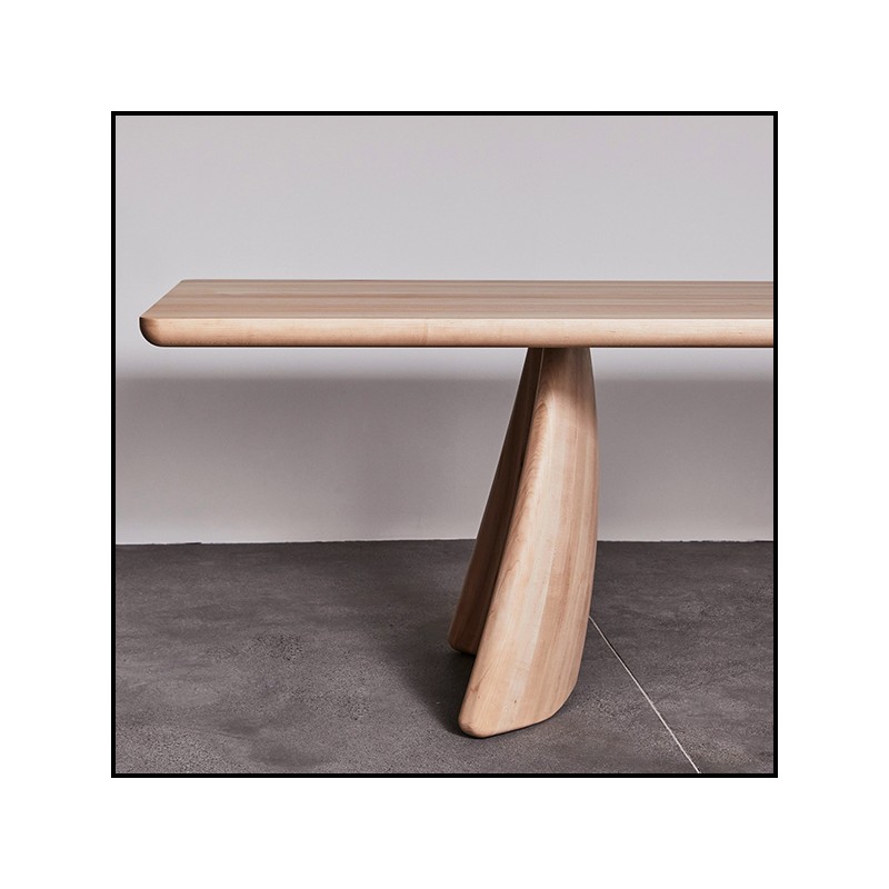 Dining table Cove Oak with a solid oak frame and a curved base.