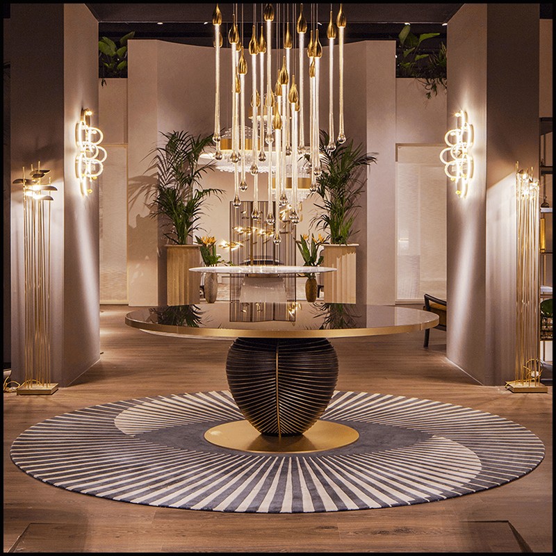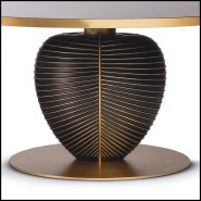 in brown colour lacquered finish and with metal trim in matt satinated gilted finish.