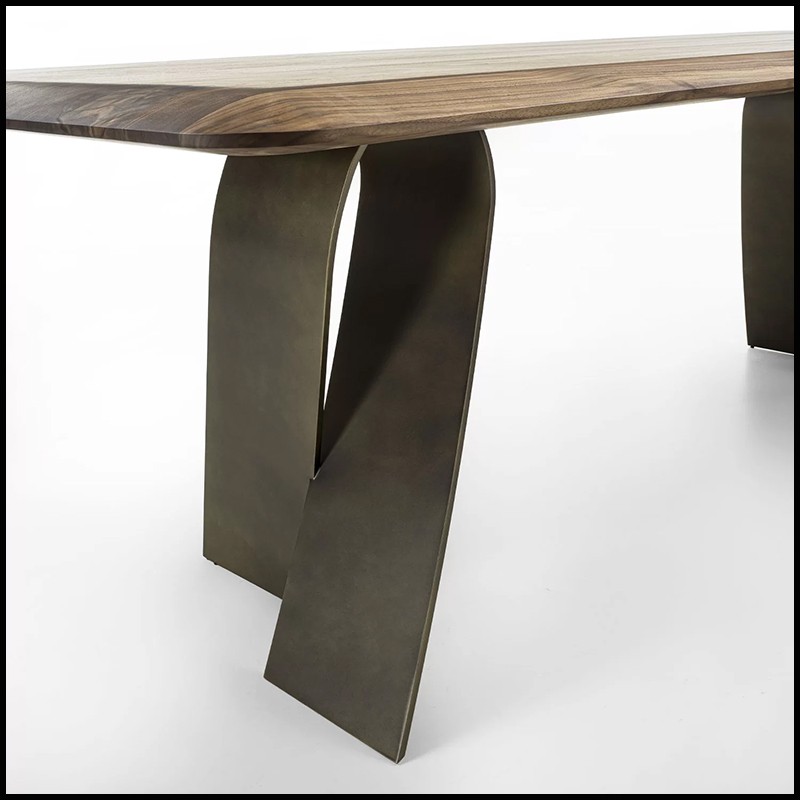 Nastro Dining Table by Riva 1920 features a solid wood structure paired with elegant steel legs, blending timeless craftsmanship with contemporary design.