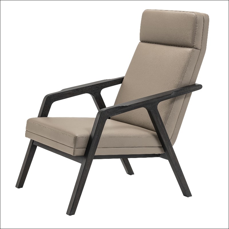 Chair Cruise with structure and armrests in mahogany wood with mocha finish.