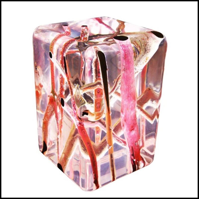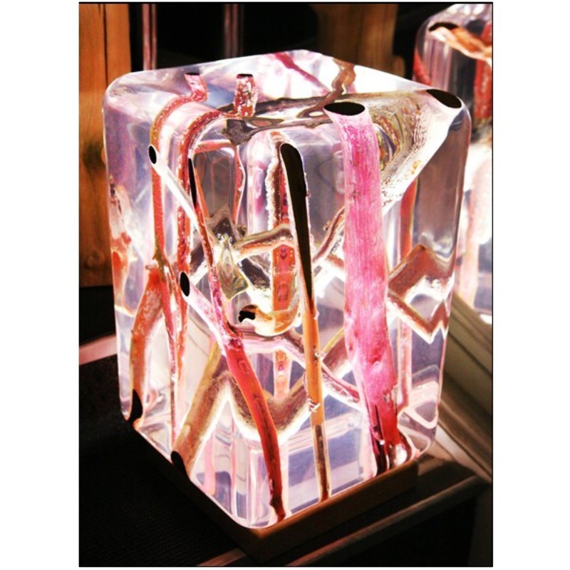 such as lacquered fluo driftwood and acrylic glass. Dimensions : L30xP30xH45cm
