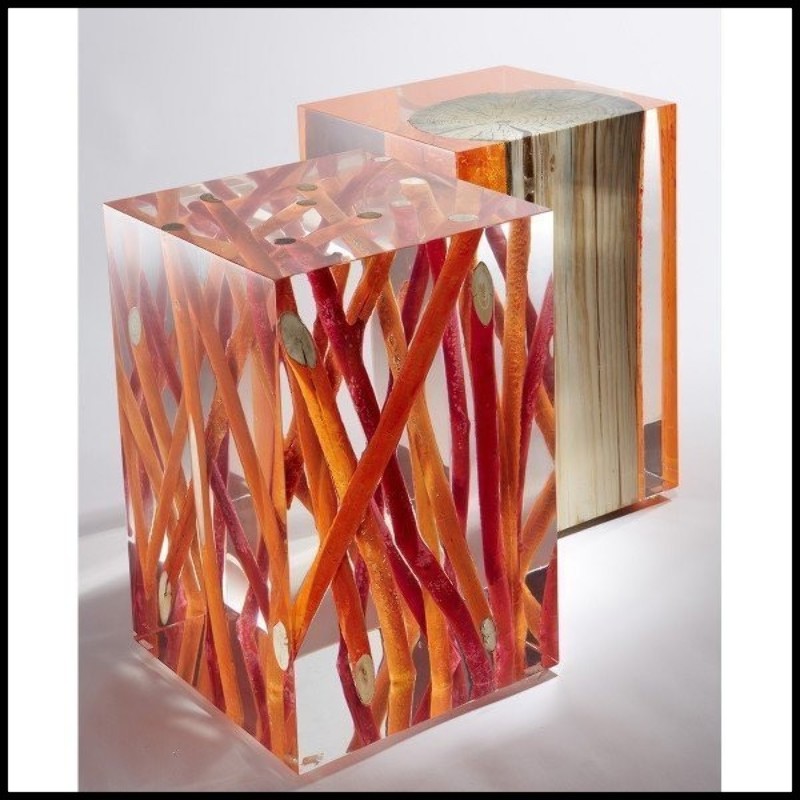 with artistic inclusions in acrylic glass. This designer side table is a true