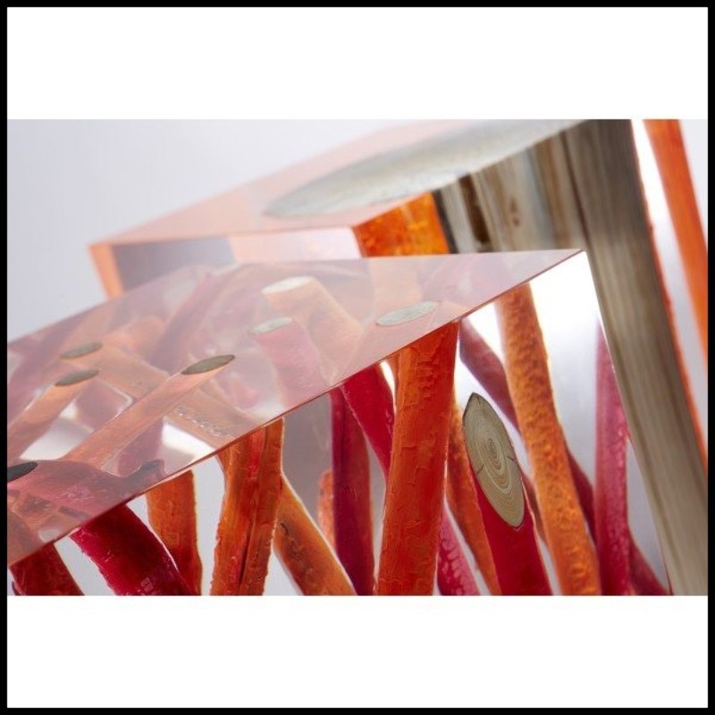 table created by the Bleu Nature brand, which combines fluo lacquered driftwood