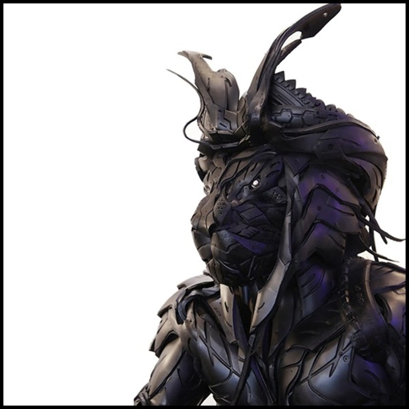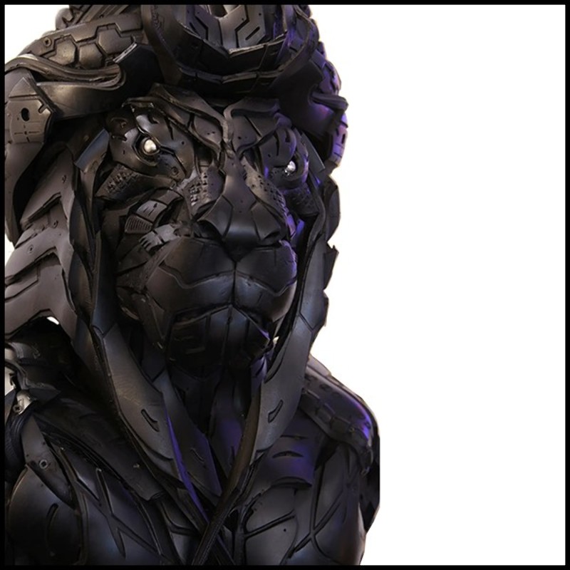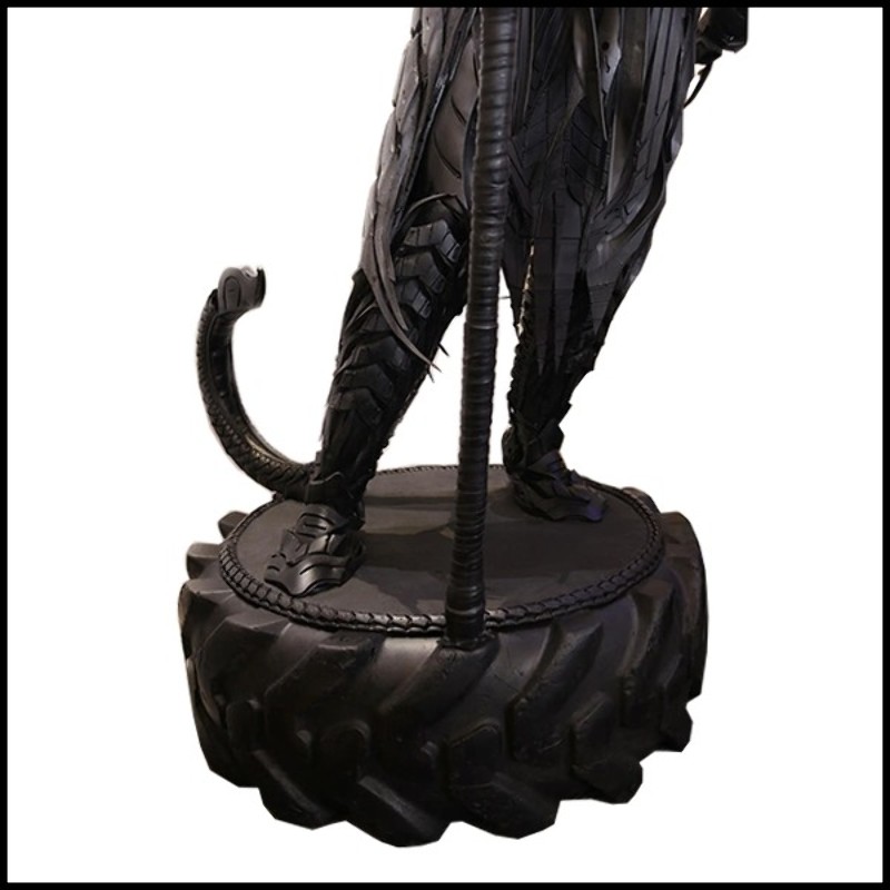 Sculpture Desert Samuraï entirely made of rubber from new tires,