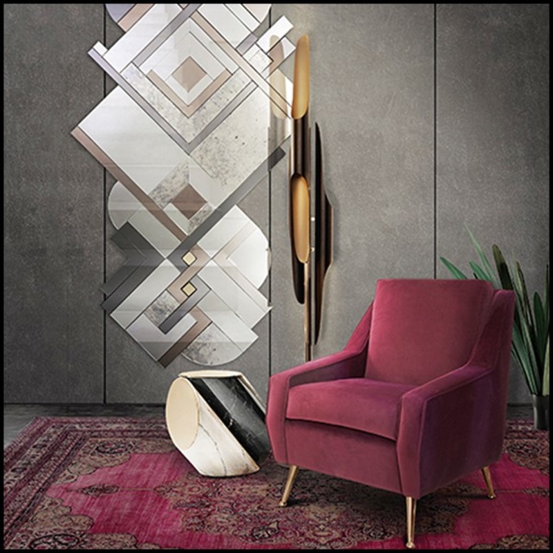 in polished stainless steel finish with gold plated brass base. Also available in Suspension or Table Lamp.