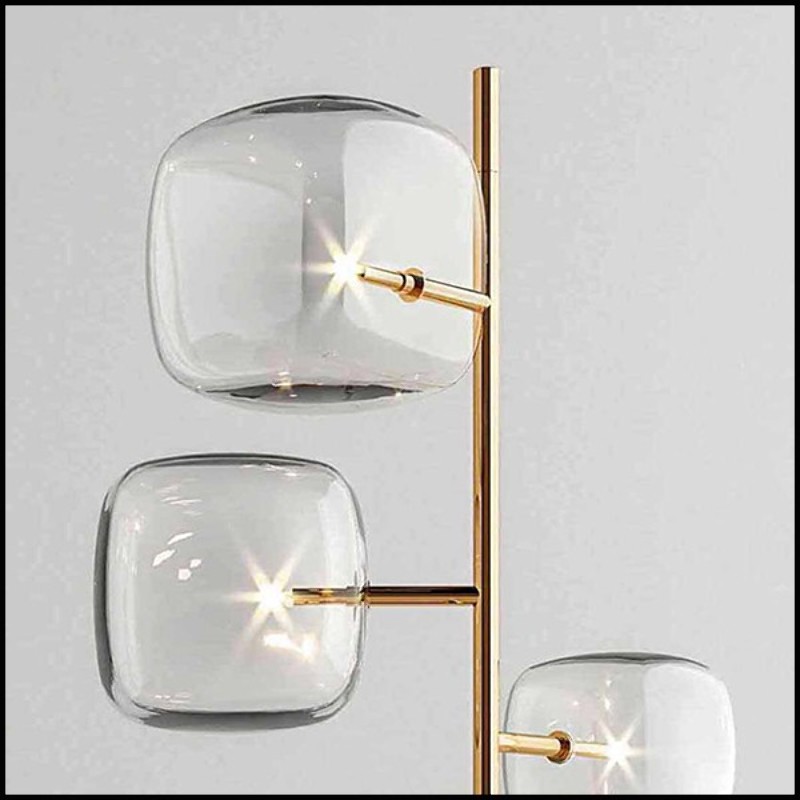 masterpiece with its polished gold finish and 4 transparent Pyrex glass cubes.
