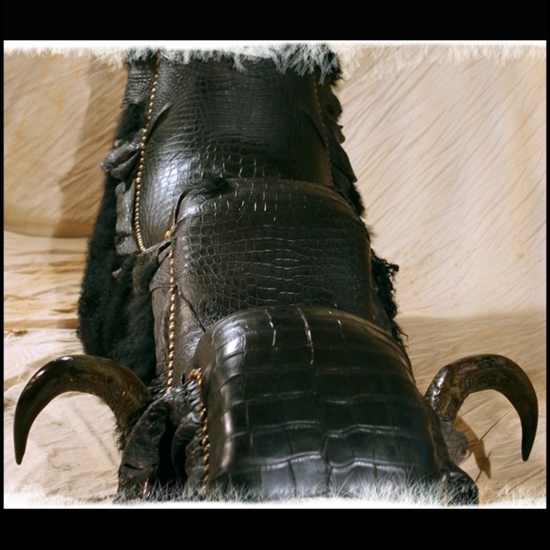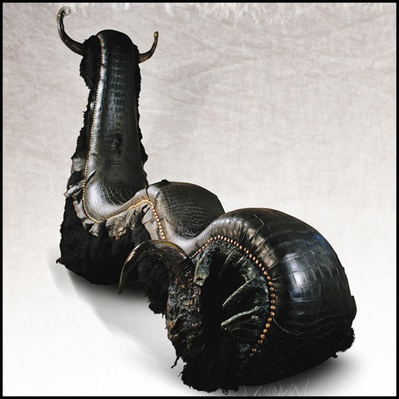 Chair with real blackened grand alligator skin and buffalo horns 120-Buffalo and Black Croco