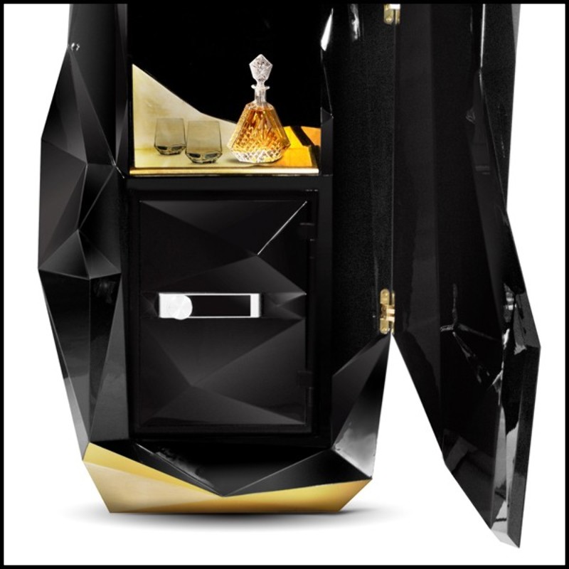 Safe in black lacquered with high gloss varnish finish and base painted in gold leaf 145-Fortnox