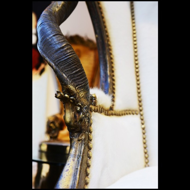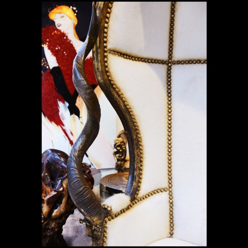 Armchair with real white Buffalo Skin and Burchell Zebra Skin with real horns PC-Dome Zebra