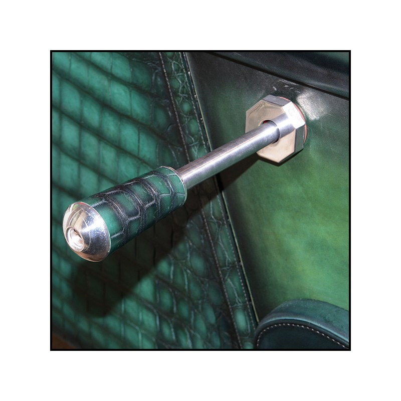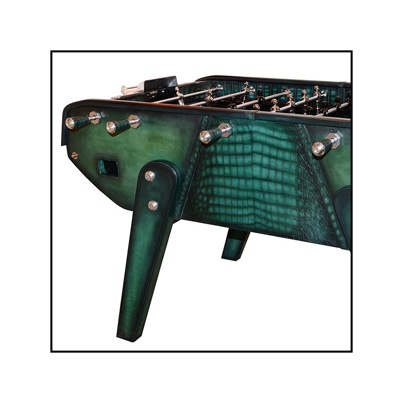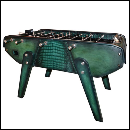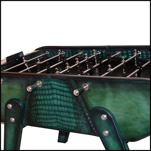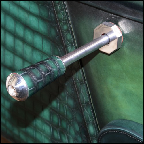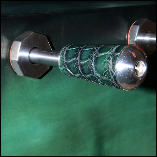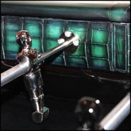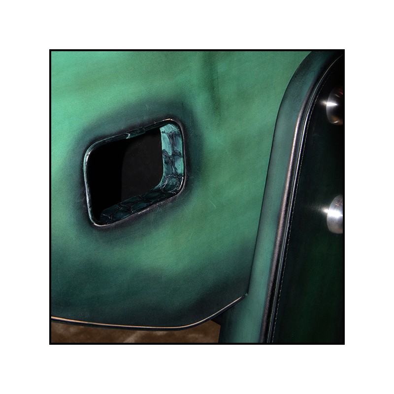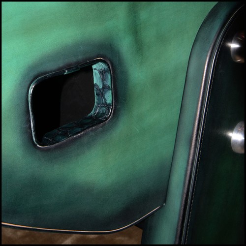 upholstered and covered in real alligator skin in dark green color and with high quality genuine dark green leather with gradient.